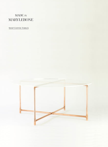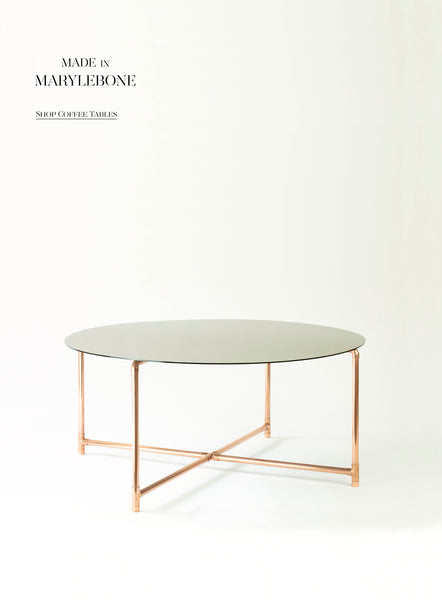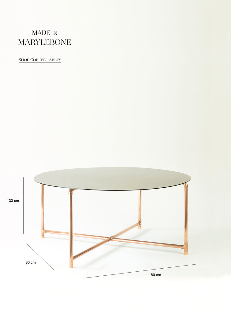 This lovely coffee table fits great within industrial homes. Its handcrafted frame is made from copper pipe and it comes with a clear or bronze mirror acrylic top or glass top.