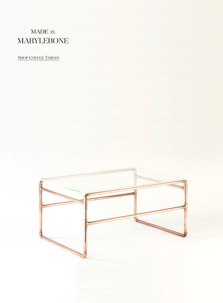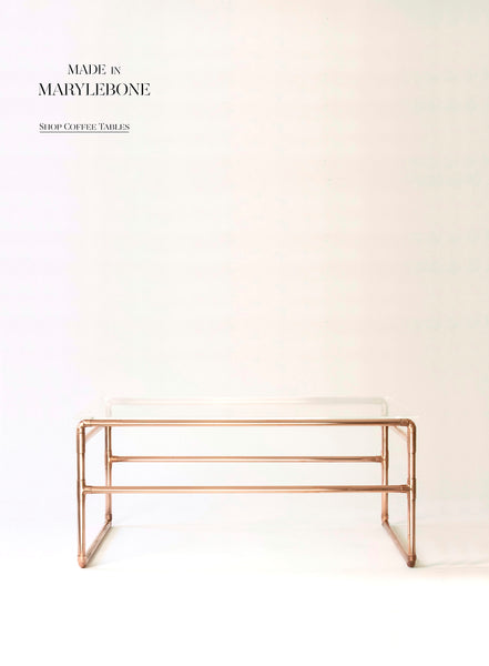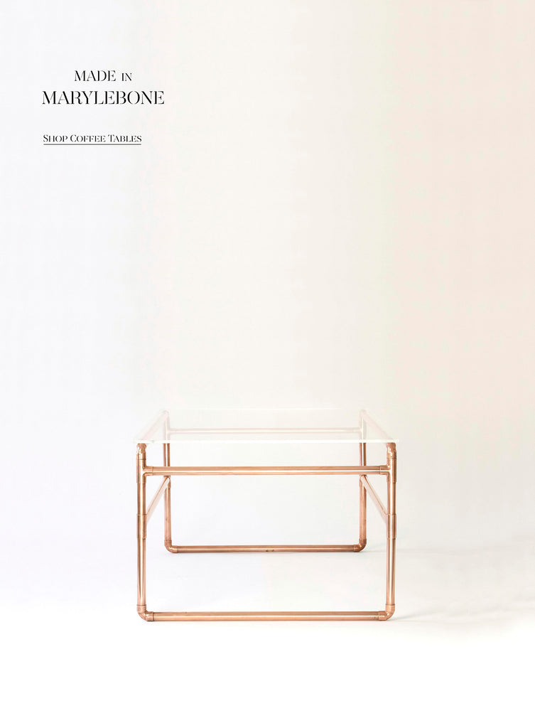 Anne: Handmade Coffee Table In Copper With Clear Acrylic or Glass Top