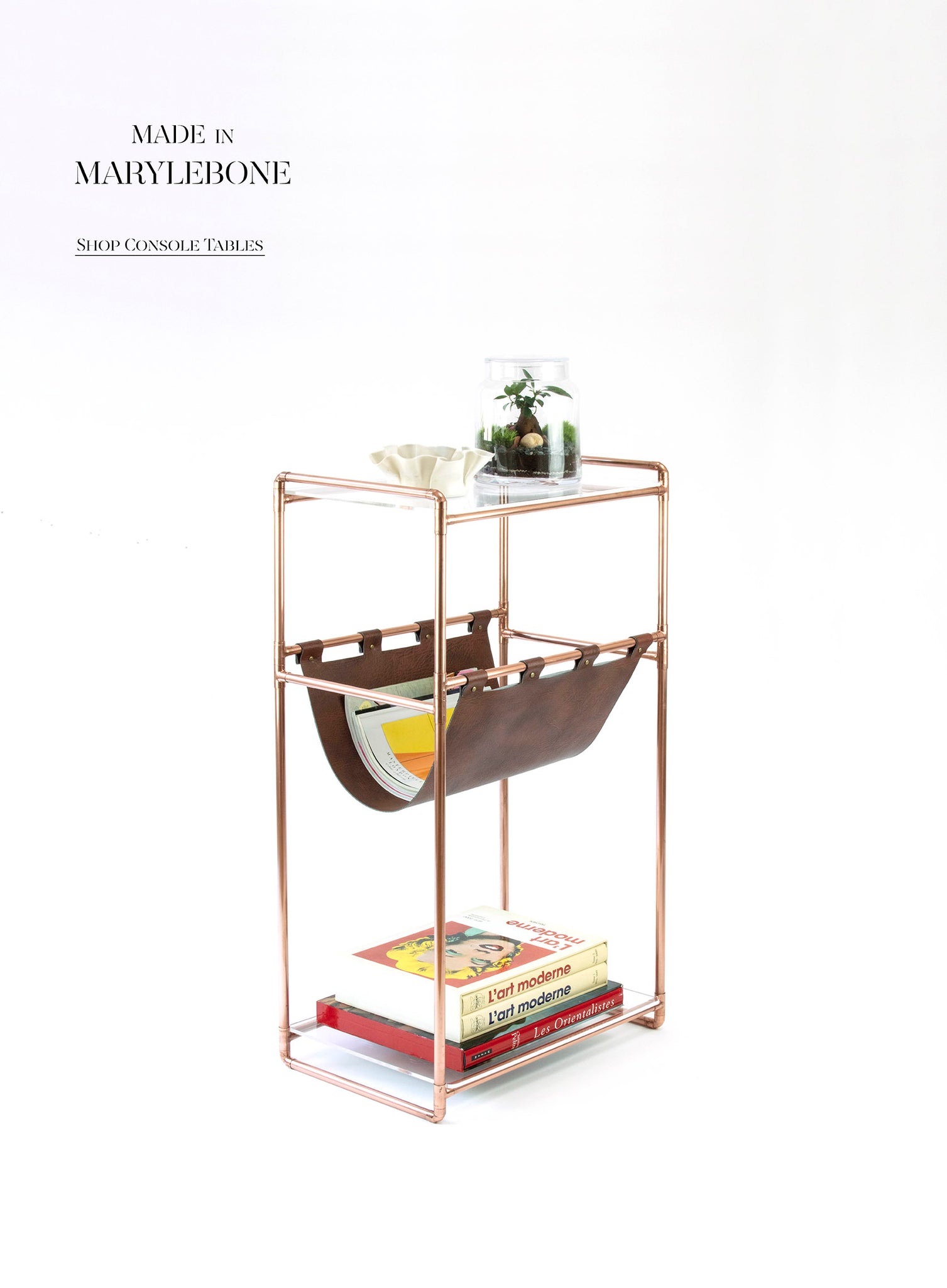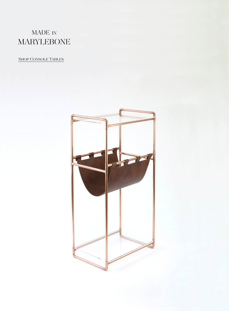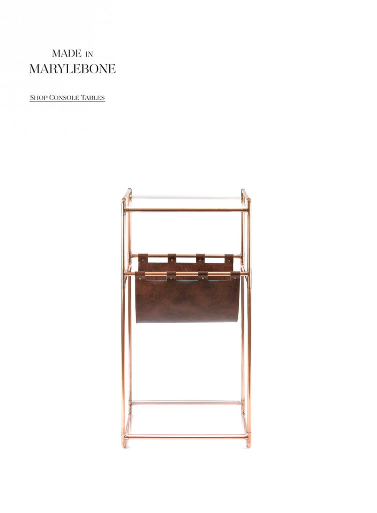 Geoffrey: Handmade Console Table In Copper With Magazine Holder