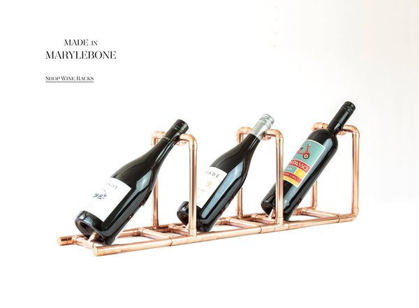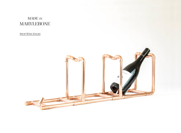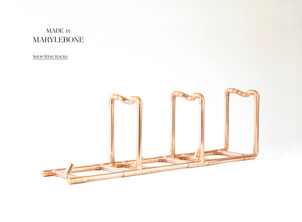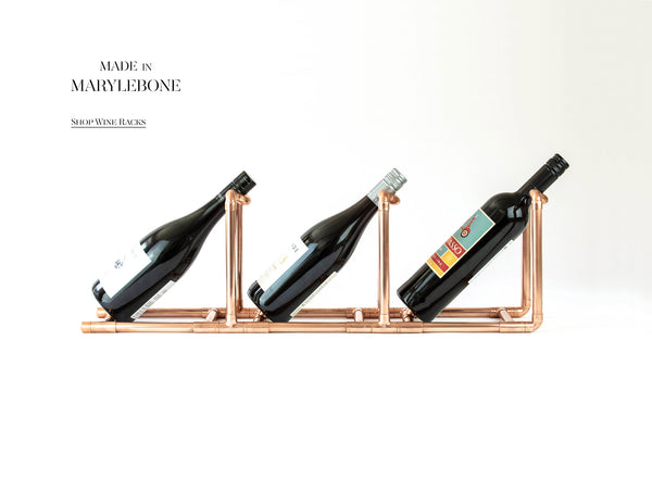This superb wine rack is the ideal gift for someone that loves industrial decor. Its handcrafted frame is made from copper pipe and holds up to 3 wine bottles.